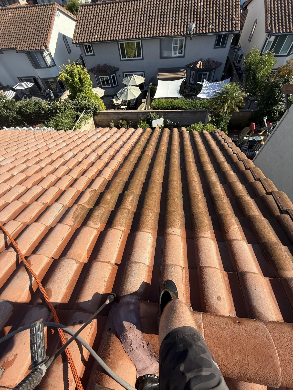 Cleaning concrete and clay roof tiles with the appropriate pressure will not damage them. In fact, power washing with some pressure is the most effective cleaning solution for most Southern California tile roofs.